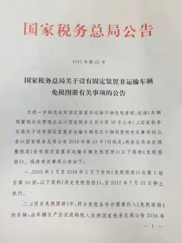 國(guó)家稅務(wù)總局關(guān)于設(shè)有固定裝置非運(yùn)輸車輛免稅圖冊(cè)有關(guān)事宜的公告