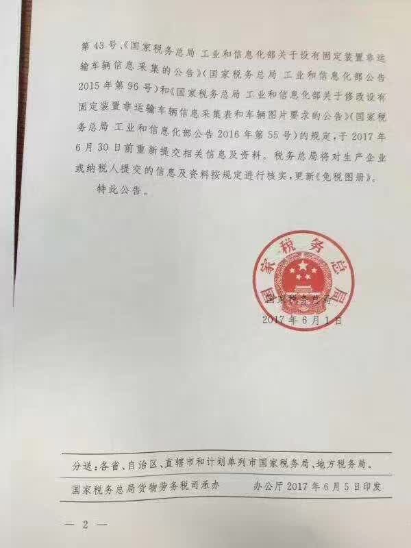 關(guān)于之前一直眾說(shuō)紛紜的,環(huán)衛(wèi)車將2017年7月1日專用車取消免稅說(shuō)法,現(xiàn)在國(guó)家稅務(wù)總局的正式文件已經(jīng)下發(fā), 已證實(shí), 并不是取消專用車免稅政策, 只是從7月1日起更換免稅圖冊(cè), 新的免稅圖冊(cè)沒(méi)有下來(lái)之前不能辦理免稅 ,所以請(qǐng)需要購(gòu)新車的客戶提前訂車, 避免造車麻煩 ,環(huán)衛(wèi)車購(gòu)置稅免征情況說(shuō)明1、《歷史免稅圖冊(cè)》(2005年1月-2016年5月下發(fā)的《免稅圖冊(cè)》)將于2017年7月31日停止執(zhí)行。2、《歷史免稅圖冊(cè)》中的免征車型由車輛生產(chǎn)企業(yè)于2017年6月30日前重新提交相關(guān)信息與資料進(jìn)行審核,更新《免稅圖冊(cè)》。原文如下: