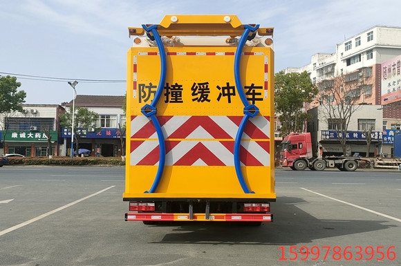 防撞碰碰車(chē)是指在汽車(chē)后部帶有防撞緩沖墊的卡車(chē)。停在建筑區(qū)后面。如果一輛車(chē)沒(méi)有看到后面來(lái)的施工區(qū)域,防撞碰碰車(chē)的緩沖墊可以吸收沖擊能量,保證前方施工人員的安全。