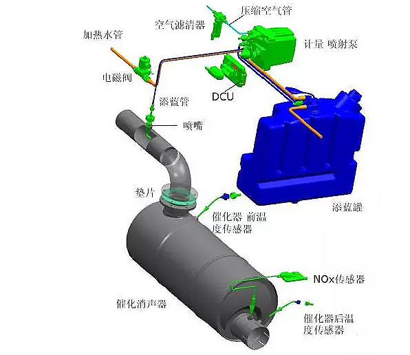 用戶國5發(fā)動機(jī)采用SCR選擇性催化還原技術(shù),可滿足國5的排放法規(guī)。柴油機(jī)所產(chǎn)生的微粒(PM)和氮氧化物(NOx)是排放中兩種最主要的污染物。從目前降低汽車尾氣排放的技術(shù)途徑來看,要達(dá)到國4、國5排放標(biāo)準(zhǔn),一般不再從發(fā)動機(jī)本身的結(jié)構(gòu)方面采取措施,通常是采取排氣后處理的方式來降低污染物的排放量,而尿素-SCR 選擇性催化還原法是最具現(xiàn)實(shí)意義的方法。