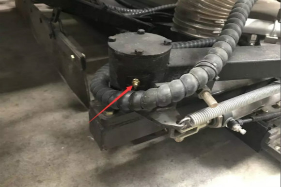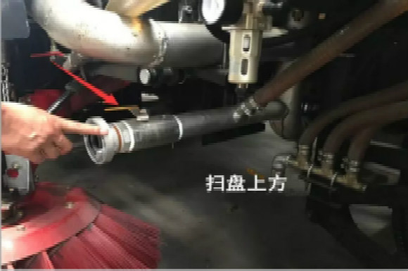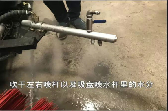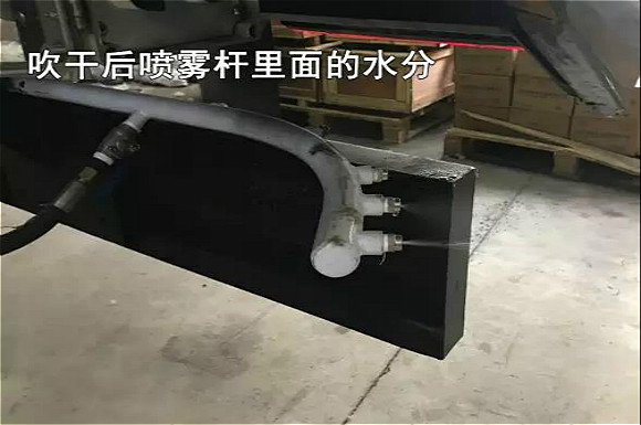 4.啟動(dòng)底盤發(fā)動(dòng)機(jī),采用氣吹水,吹干滯留在左右噴桿、吸盤噴水桿、后噴霧桿里的水分