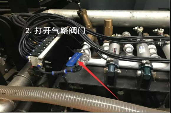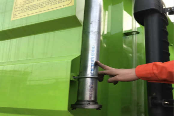 車尾操作盒輔助打開,然后打開藍(lán)色閥門,吹干后噴霧桿里面的水分