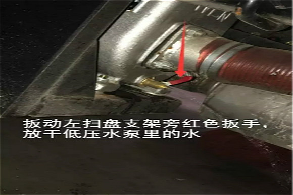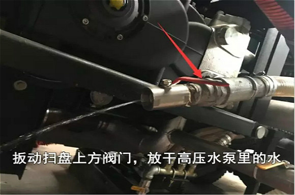3.寒冷地區(qū)冬天車輛使用完畢后,應(yīng)放干水箱、水管、水路以及濾杯里面的水,防止凍裂(扳動(dòng)閥門扳手放水)