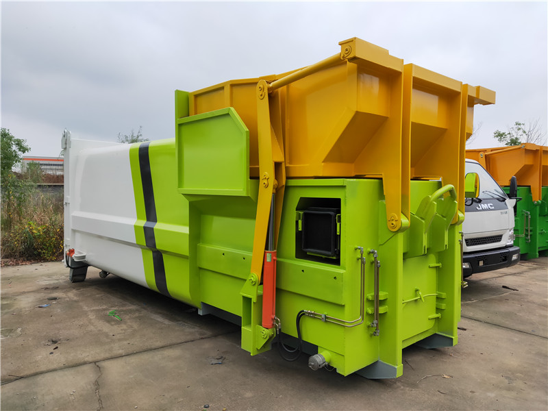 勾臂垃圾車【車廂可卸式垃圾車】車體和垃圾箱可完全分離,由液壓系統(tǒng)來完成收箱/放箱,在平日里可將車載垃圾箱放置到各個(gè)垃圾收集點(diǎn),待垃圾收集滿后,該車可直接開赴收集點(diǎn),通過液壓系統(tǒng)的操控,可將垃圾車后座上加裝的勾臂放下,掛住站內(nèi)箱體前端的連接點(diǎn),將垃圾箱拉**車體的后座上,此時(shí)即可開動(dòng)車輛,將垃圾運(yùn)送垃圾處理站內(nèi),進(jìn)行自卸式傾倒,優(yōu)點(diǎn)就是可一車配多斗,一輛車就可以維持?jǐn)?shù)個(gè)垃圾收集站的運(yùn)轉(zhuǎn),效率高,且箱體為密封式設(shè)計(jì),不會(huì)造成二次污染。
