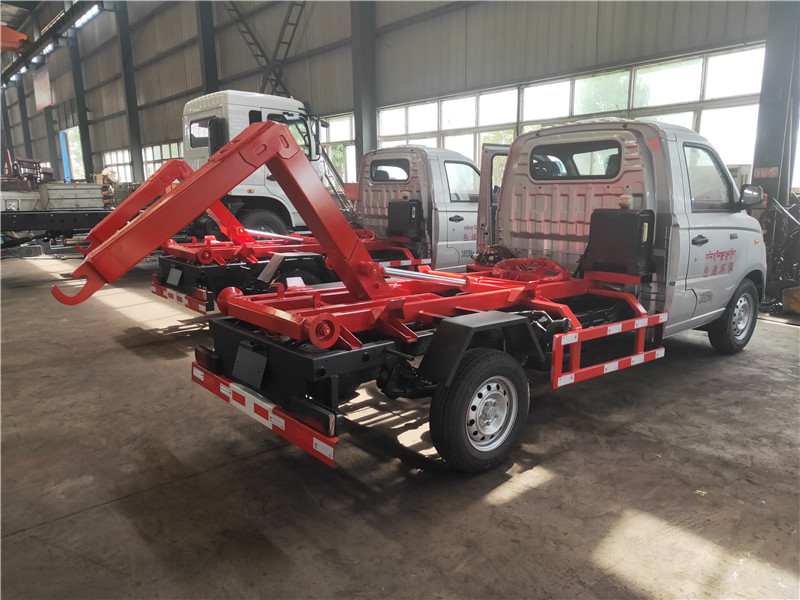 勾臂垃圾車【車廂可卸式垃圾車】車體和垃圾箱可完全分離,由液壓系統(tǒng)來完成收箱/放箱,在平日里可將車載垃圾箱放置到各個垃圾收集點,待垃圾收集滿后,該車可直接開赴收集點,通過液壓系統(tǒng)的操控,可將垃圾車后座上加裝的勾臂放下,掛住站內(nèi)箱體前端的連接點,將垃圾箱拉**車體的后座上,此時即可開動車輛,將垃圾運送垃圾處理站內(nèi),進行自卸式傾倒,優(yōu)點就是可一車配多斗,一輛車就可以維持數(shù)個垃圾收集站的運轉(zhuǎn),效率高,且箱體為密封式設(shè)計,不會造成二次污染。