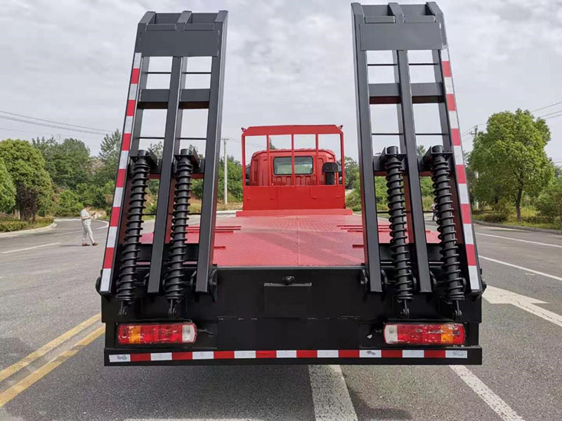 上裝配置橫梁方管、底板花紋板,平板展開可選裝液壓伸縮,爬梯采用雙彈簧加強(qiáng)型設(shè)計(jì),三道筋+雙彈簧加固焊接技術(shù),可選裝液壓爬梯或折疊加長型液壓爬梯,斜坡處帶后支腿